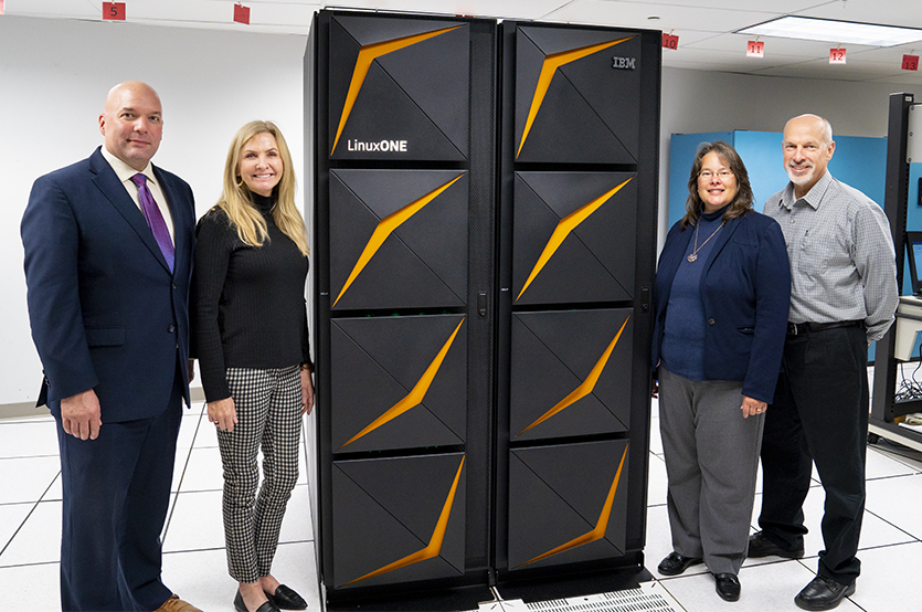 (L-R) Mike Caputo, Vice President for Information Technology/CIO at Marist College; Yvette LaMar, Director, IBM Z Influencer Ecosystem; Cindy Worrad, Assistant Dean, School of Computer Science and Mathematics at Marist College; Greg Lacey, Program Manager, IBM/Marist Joint Studies.
