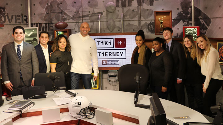 One floor below the newsroom students also got to tour three studios of the world’s earliest 24/7 sports radio station: WFAN Sports Radio (660 AM, 101.9 FM). Vice President of Programming Mark Chernoff led a discussion on his career path in the radio industry and brought the group to the studios used for broadcasts of mainstay programs such as Boomer and Gio, The Afternoon Drive, and Tiki and Tierney.