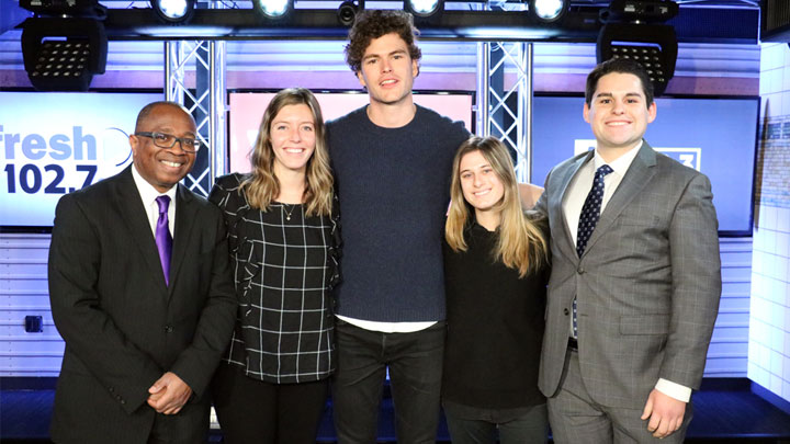 The afternoon included a musical performance by a platinum recording artist, studio tours on two floors, and meet and greet opportunities with leaders across the technical, news, sports, on-air, programming, and sales departments at the Entercom facility. Rich Nass ’92, director of automotive sales for Entercom New York, helped plan and organize the visit.