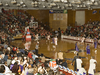 A significant number of transformations have taken place over the years. In 1998, 18 Musco 1,500-watt metal halide light fixtures were installed to supplement the existing lighting scheme. Another capital improvement occurred in 1998 when two new Daktronics scoreboards, a player statistics display board, electronic message center and three-sided shot clocks were installed. During the 2005-06 season, the installation of a new public address and sound system was completed. A new set of bleachers for the student section were added to the south end, which were replaced in the 2011 renovations.