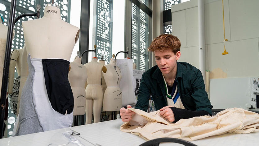 Coming into the fashion program with little sewing experience, Bissell is now finishing his senior year designing with cutting-edge technology and entering the workforce as the fashion industry moves into the future.