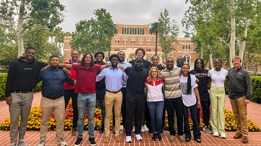 A group of 12 student-athletes and four staff members represented Marist at the annual Black Student-Athlete Summit at the University of Southern California in Los Angeles — the largest cohort Marist has ever sent to the event. The initiative involved collaboration from various departments, including the Department of Athletics and its IDEA Committee, the Office of Diversity, Equity, and Inclusion, Academic Affairs, and the Marist Center for Student-Athlete Enhancement (CSAE).