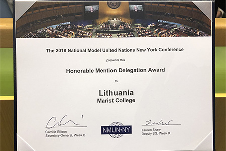 Pupcenoks was proud of the effort students put forth. They were well-prepared and in the end the Marist team won its first Honorable Mention Delegation Award.