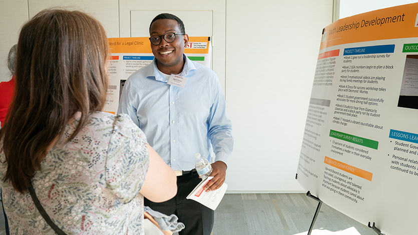 The experience was a defining one for him. “I enjoyed working with Upward Bound Program students because I faced some of the challenges they were going through. Those students wanted to succeed and they taught me a lot throughout the summer program,” he explained. In his role as an intern, Palmer mentored students, focused on building leadership skills, and secured guest speakers.