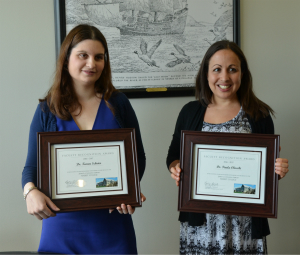 The 2016-2017 Faculty Recognition Awards were presented this week to Dr. Paula Checchi, assistant professor of biology, and Dr. Karen Schrier, assistant professor of media arts. The awards are presented annually by the James A. Cannavino Library and the Library Development Committee to faculty members who have distinguished themselves by their scholarly and/or creative work.