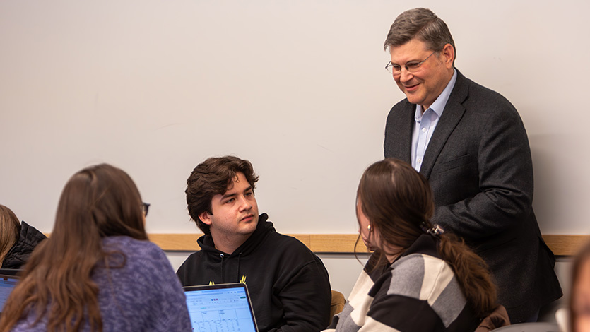 Dr. Jim Melitski reviewing data with Karina Syrota ’26 (left) and her group. Photo by Emily Portnov ‘29/Marist University.
