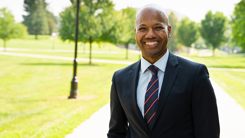 September 23, 2020—For Addrain Conyers, it always comes back to students. He juggles numerous responsibilities as Associate Professor and Chair of the Criminal Justice Department and in his administrative role as Director of Academic Diversity and Inclusion. In the midst of managing those key positions, he has also organized two social justice conferences at the College. This year, he was honored with the Board of Trustees’ Faculty Award for Distinguished Teaching. The award was given during the virtual faculty convocation today.