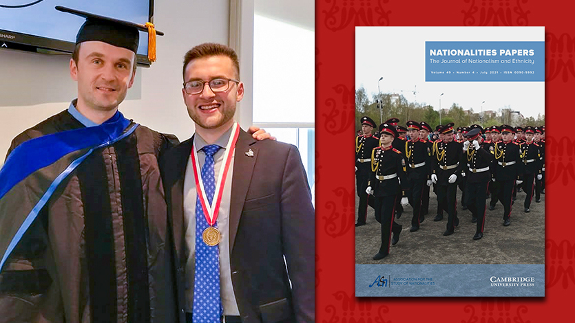 December 7, 2021 — Eric James Seltzer '18, and Dr. Juris Pupcenoks, Associate Professor of Political Science, co-authored an article "Russian Strategic Narratives on R2P in the 'Near Abroad’" which was recently published in Nationalities Papers, a top history and political science journal by Cambridge University Press.