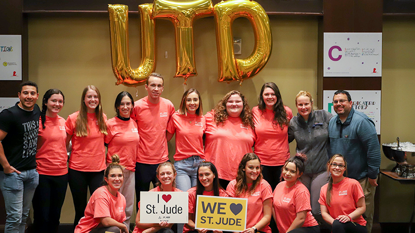 Club advisors Maryellen Guardino ’07/‘11M and Joseph Guardino ’06/’15M are justifiably proud of this year’s fundraising accomplishment. “What St. Jude does is not just about the child, it also incorporates the whole family,” said Guardino, Associate Director of the Office of Accommodations and Accessibility. “They take care of everybody being affected, which includes providing housing and ensuring that the child, parents, and siblings are all cared for.”