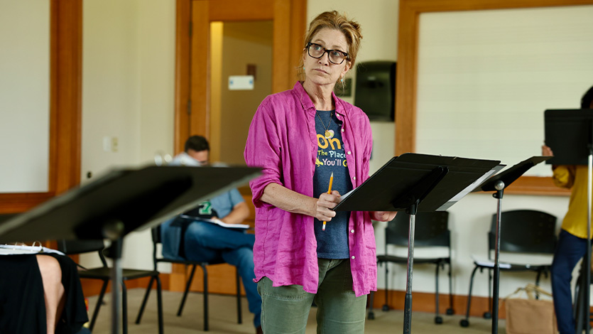Emmy and Golden Globe winner Edie Falco, seen during rehearsals, performed in Gertrude at the Nelly Goletti Theatre at Marist University. Photo courtesy of Deborah Lopez.