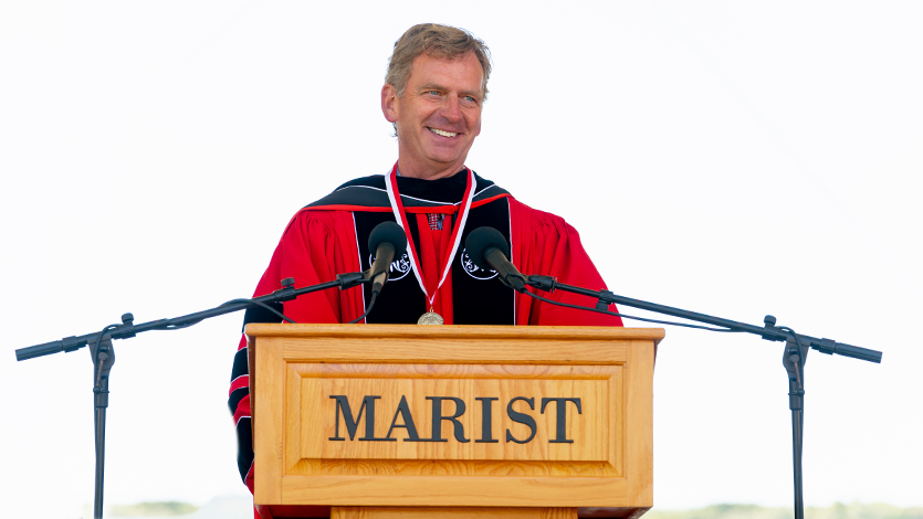 "As you know, there is much debate about the continuing value of the liberal arts compared to a form of education that focuses on professional training. I don’t understand this. In fact, I see no debate here at all," he said. "The debate between the relative merits of a liberal arts education versus professional education presumes that we must choose one or the other. We don’t. Not only can they co-exist, they are mutually reinforcing. This is especially true at Marist College. Here, we aspire to and, not or."